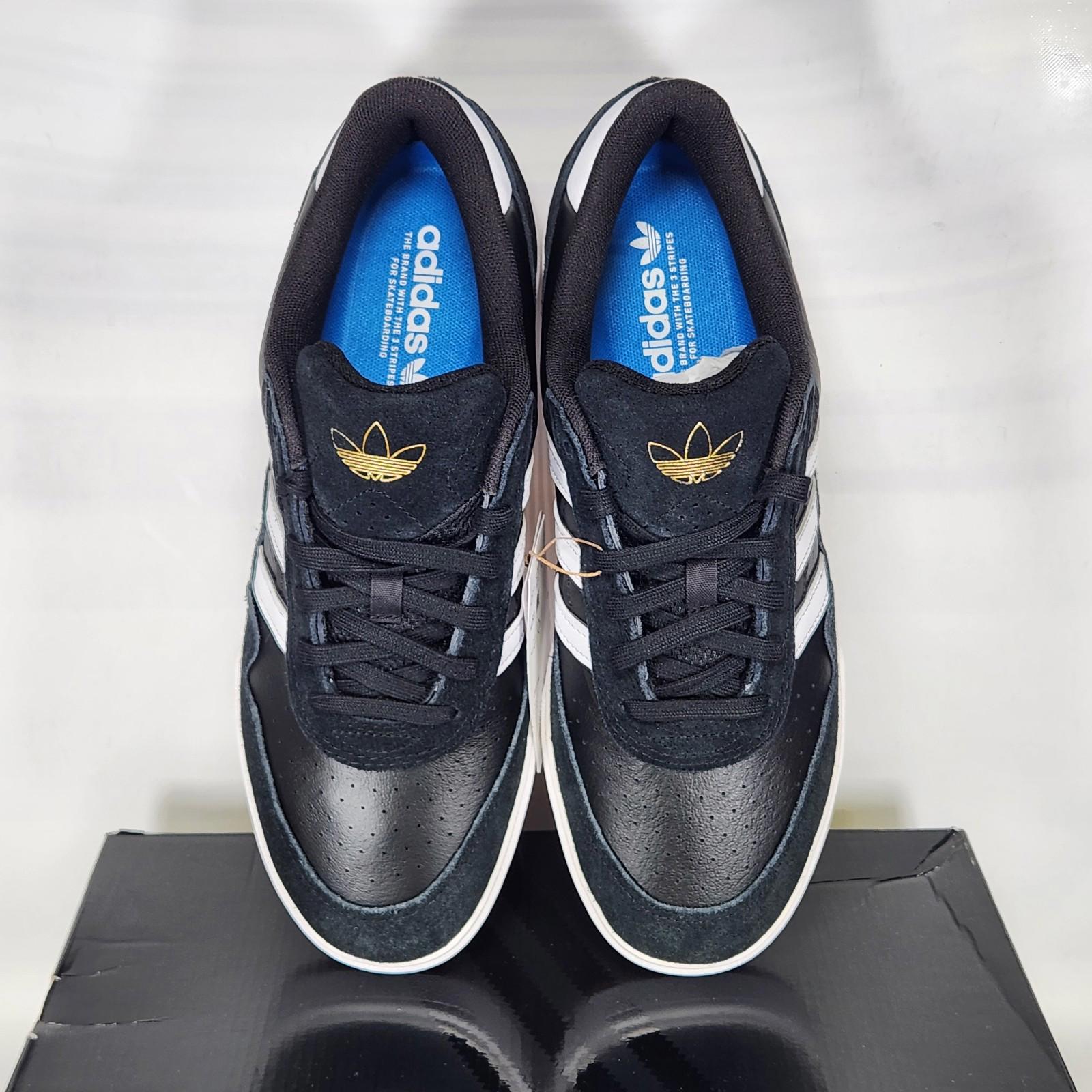 The Core Black / Cloud White / Gum colorway is a timeless classic. It features a premium leather upper, clean white three-stripes, and signature gold foil TYSHAWN lettering. Designed for performance, the shoe includes a durable cupsole and a dual-layered toe for longevity and support, making it perfect for skating or casual streetwear.
