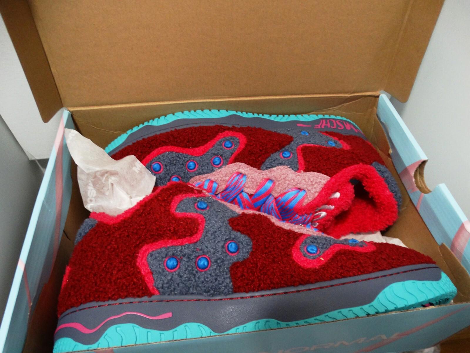 This pair is a US Men's Size 12 and is 100% Deadstock (New in Box). It has never been worn or altered. These were extremely difficult to acquire due to the short raffle window and high demand. A true collector's item for fans of Mr. Rager or anyone looking for a statement piece that defies the norm.