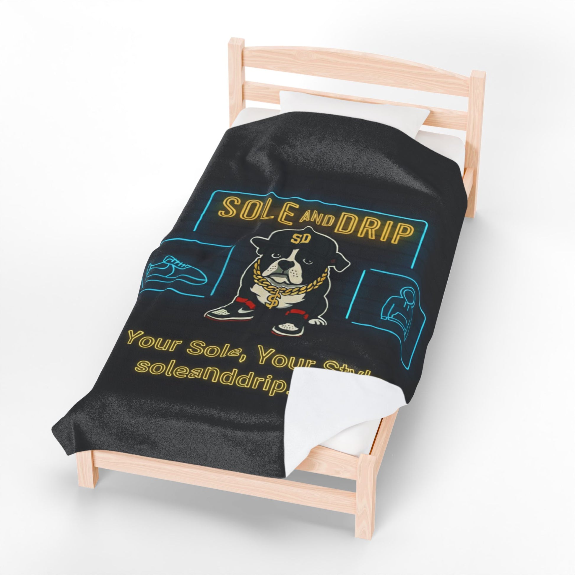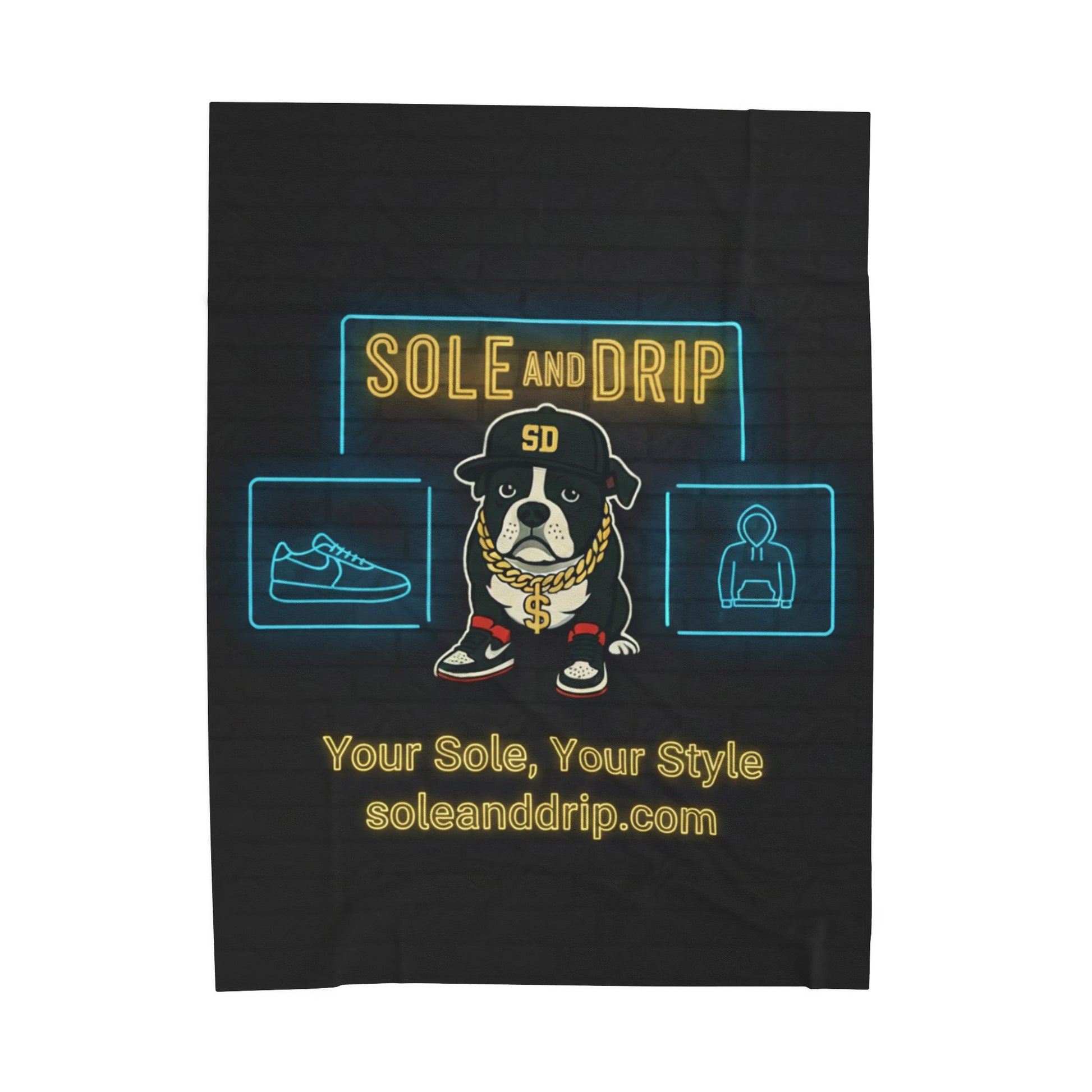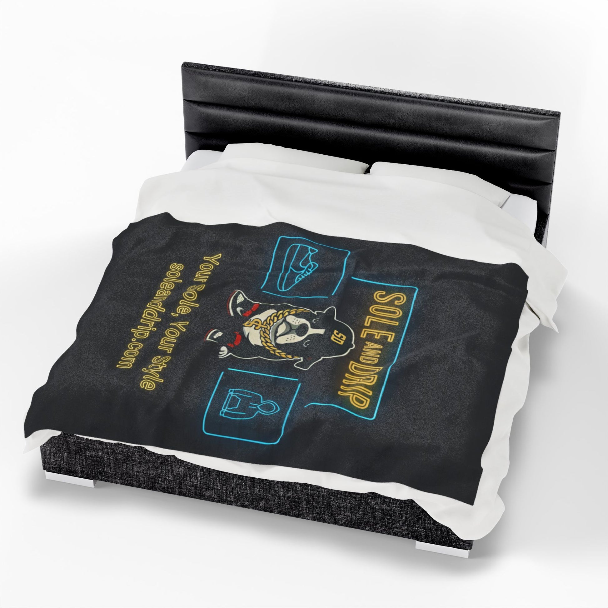 Velveteen Plush Blanket — 'Sole and Drip' Neon Rocco Logo Cozy Throw